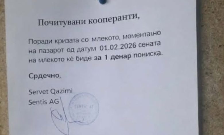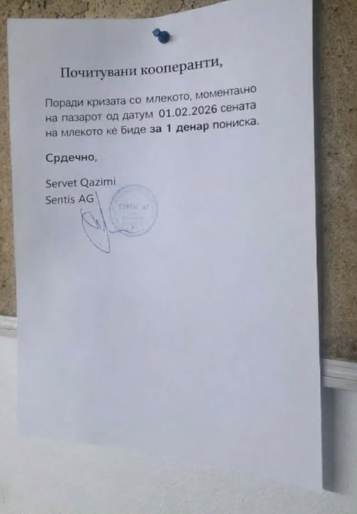 „Секторот за млеко во државата се соочува со сериозна криза. Во изминатиот период, откупната цена на млекото за фармерите е намалена за уште 1 денар по литар, што дополнително ја влошува нивната економска состојба.